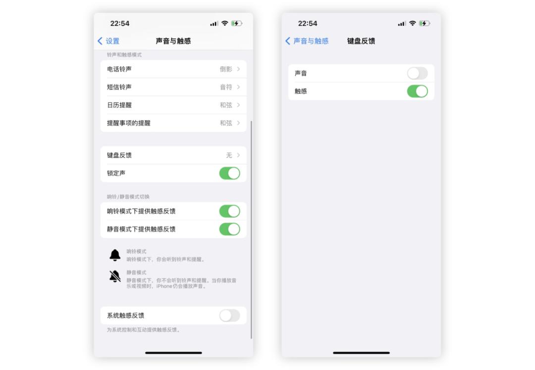 iOS 16 系统中加入全局性的触感反馈,不仅在进行系统控制和交互方面加入了轻微的触感反馈,还给键盘输入加入了触感的设定。目前,暂时只有开启和关闭的选项,不支持触感反馈的力度调整。