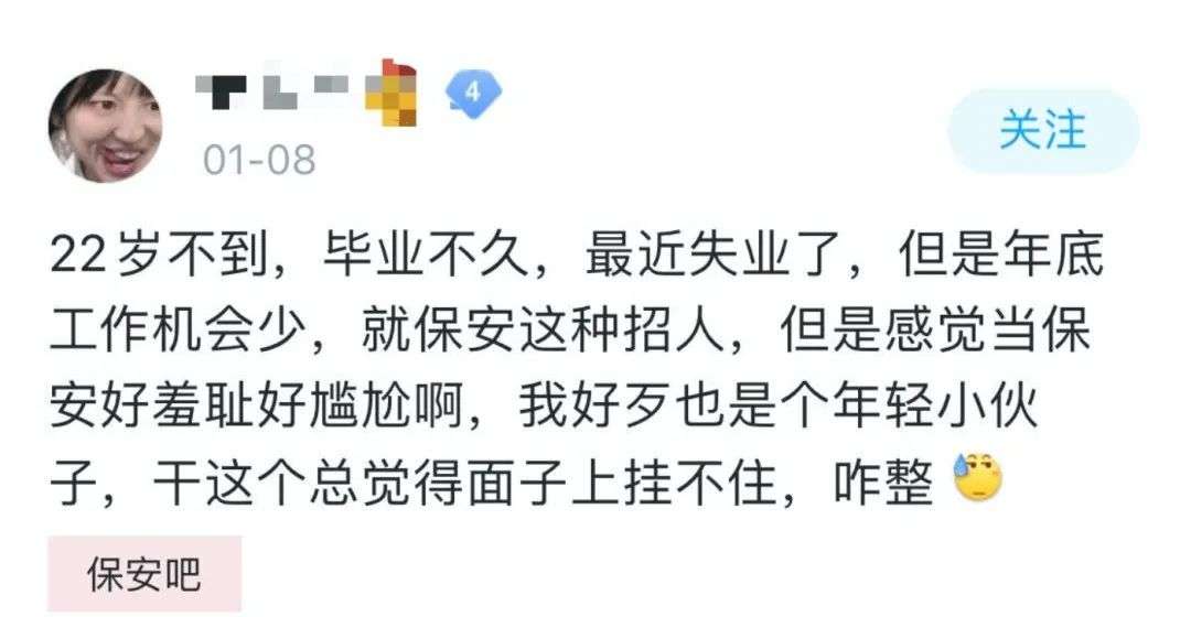 一吓是怀疑,校工作人员是不是也刷到了某书上正火热的年轻人求职保安潮。