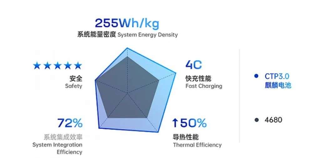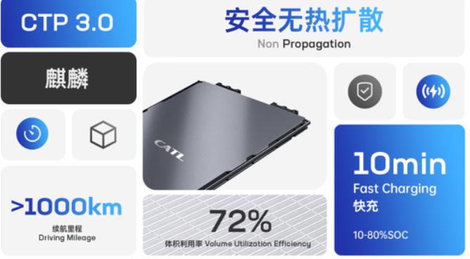 据发布数据显示,麒麟电池已实现1000km续航,可以兼容用户长短途、多场景的出行需求,减少车到半路无处充电的尴尬情景,大大缓解用户的“续航焦虑”;充电速度方面麒麟电池也有了巨大的突破,号称可以实现“4C快充”,仅需10分钟就可将电动车电池由10%电量充至80%,在便捷性方面可与燃油车并肩,切实解决新能源汽车“补电焦虑”;由于电池内部空间结构的改良,电池热稳定性与安全性也大大提升,减轻用户的“安全焦虑”。