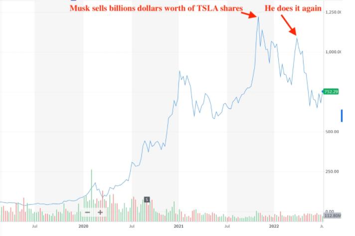马斯克两次高位套现和之后的股价走势图