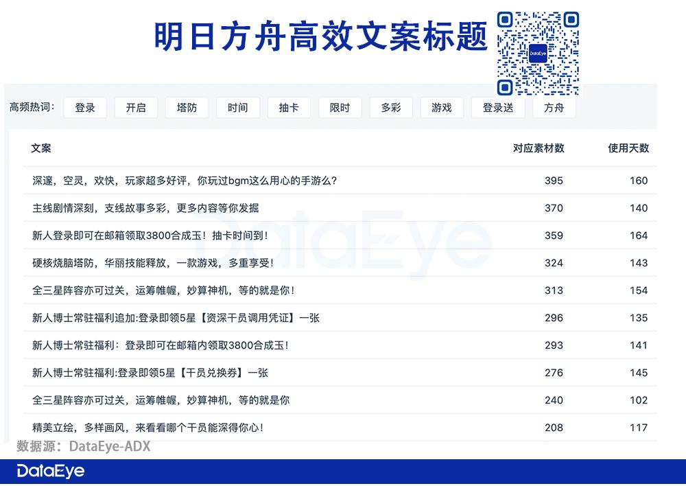 最大特点在于:《明日方舟》高效文案并不露出游戏名,而是单纯凭画面、福利、文字吸引用户进一步了解,试图让用户产生“这是什么游戏?新游戏吗?”的疑问,进而诱发点击。
