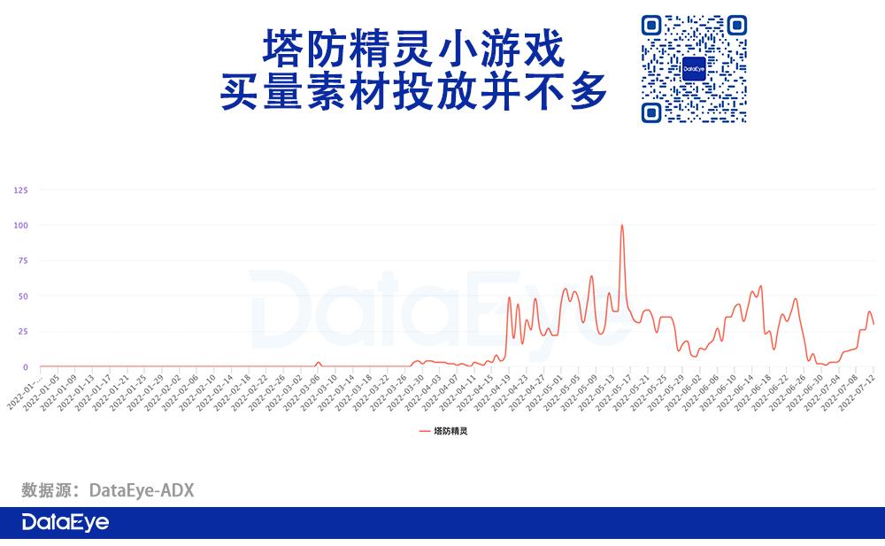 以时间节点来看,《塔防精灵》小游戏并没有针对市场关键节点进行加大买量投放,包括五一、端午以及即将到来的暑期档。