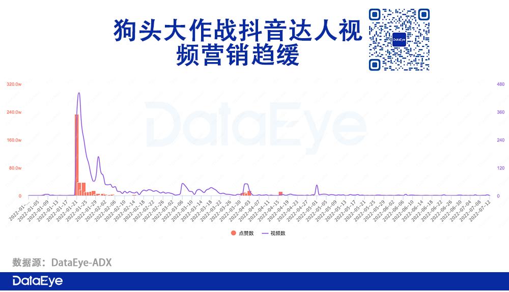 DataEye-ADX数据也显示,《狗头大作战》抖音效果型达人视频营销力度趋缓。