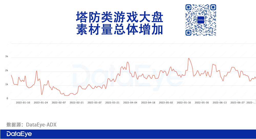 塔防游戏大盘素材量也有所增加。