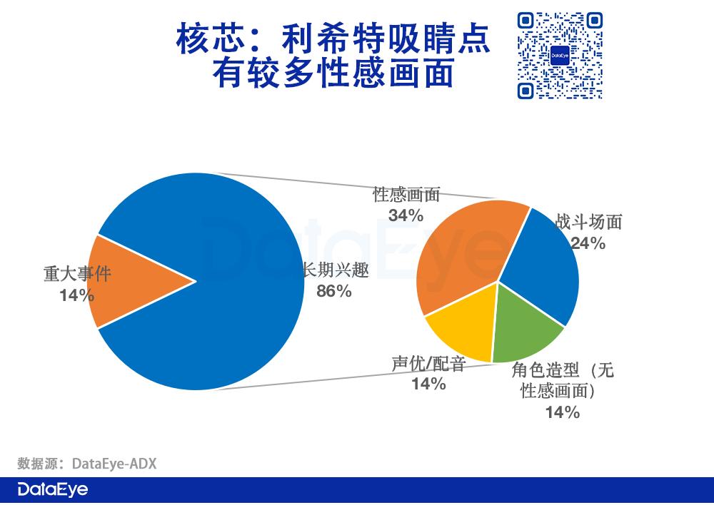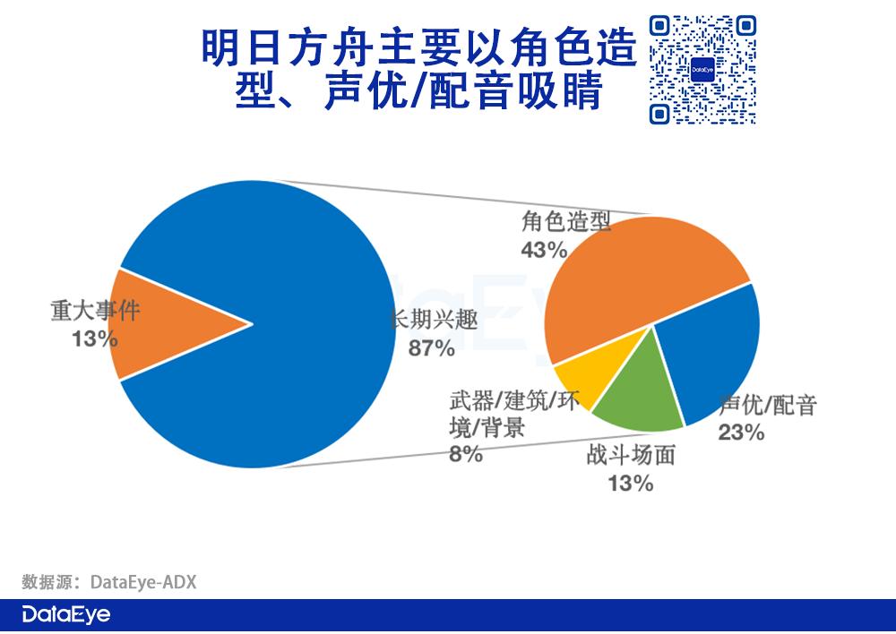 ·吸睛点:以【长期兴趣】原则为主,即简单直接地透过角色造型、声优/配音、战斗、武器、环境等元素展示美术能力。其次,辅之以【重大事件】原则,即高效素材往往都是介绍新角色、新活动上线。