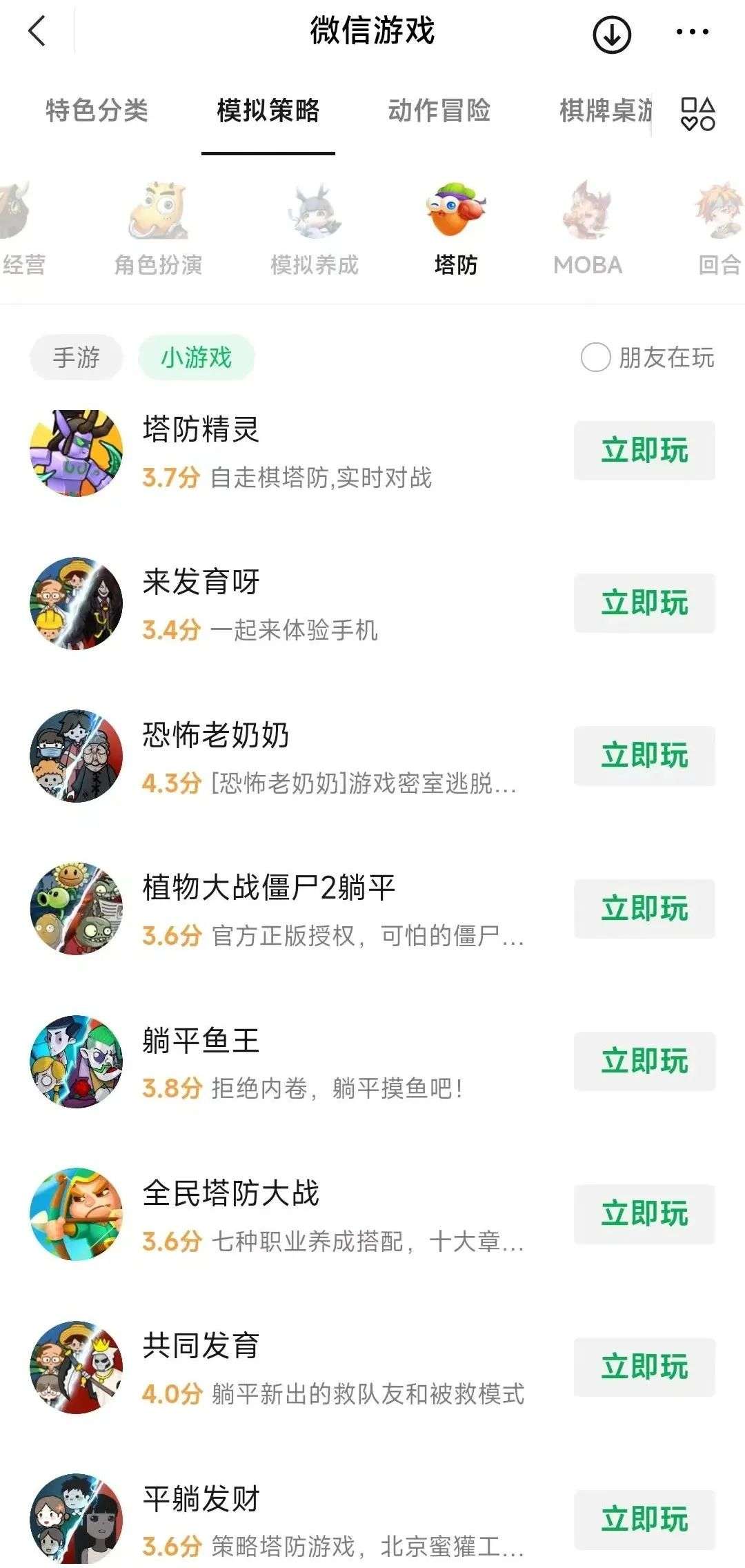 2、塔防微信小游戏题材往往怀旧化,并出现严重的“蹭IP情况”。7月12号微信小游戏-塔防类29款游戏中,名字带“躺平/平躺”“发育”“宿舍”的高达6款,而类似“植物大战僵尸”的有5款。此外还有蹭“咸鱼”IP的塔防。