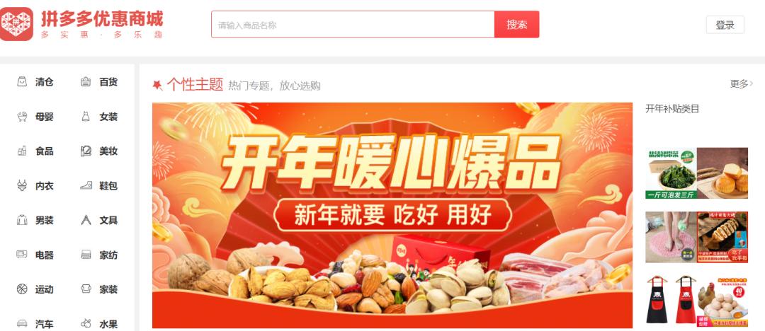 成立于2015年的拼多多恰好赶上移动互联网飞速发展的风口。在移动端打下一片江山后,拼多多却开起了历史的“倒车”。对流量与品牌化的渴望,写满了拼多多网页版商城页面。
