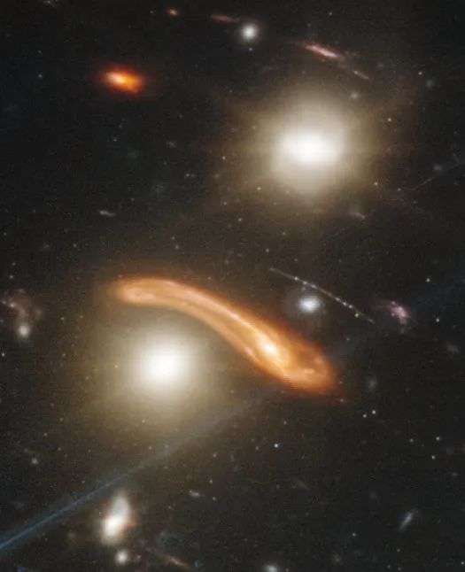 它们原本躲在 SMACS 0723 的身后,不过,SMACS 0723 强大的引力作用,使周围时空发生扭曲,将远方星系路过的光掰弯了,于是呈现出多个重复的像,犹如透过一个凸透镜进行观察。