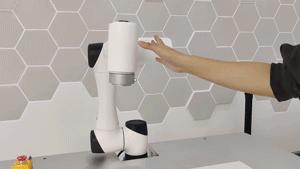 第二种是在碰撞后降低碰撞的冲击力,防止对人造成二次伤害。除了用前述的传感器检测,还有创业公司选择用更轻的材料或者增加弹性材料来实现。比如深圳越疆科技就给机械臂包裹了一层含有温度、压力传感器的电子皮肤,可以检测到人接近的同时还能起到缓冲作用。
