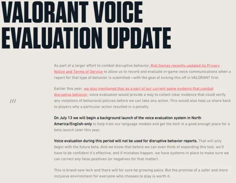 其实这个话题不算新鲜,只是恰好拳头公司今天(7月13日)要在旗下FPS游戏《无畏契约》(Valorant)里,正式实装“语音评估系统”。