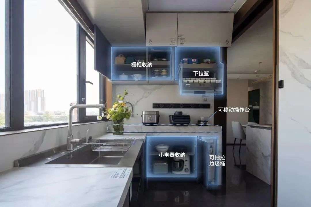 厨房引入集成灶、集成水槽等,实现空间的高度集约,让妈妈更好地实现囤货自由。