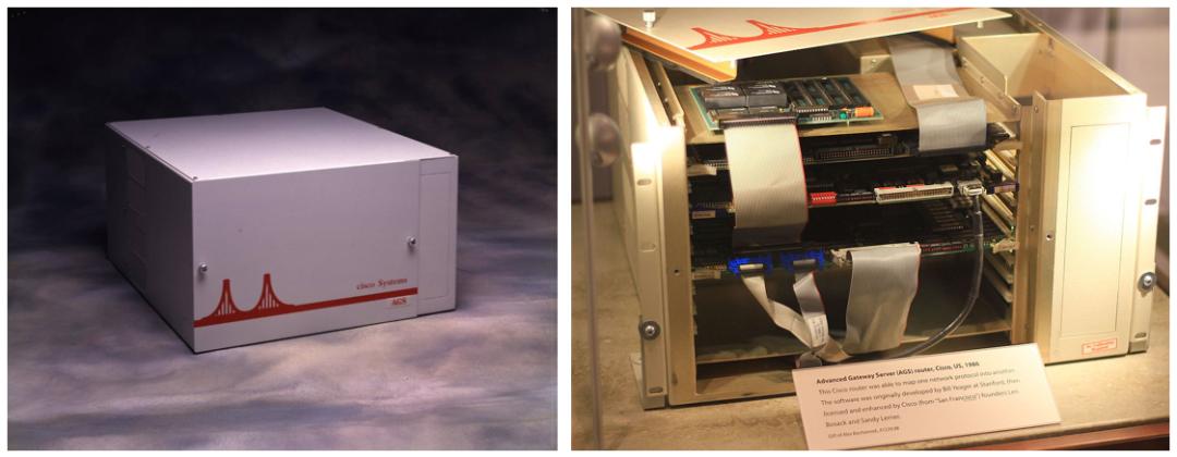 1986年,思科公司正式推出了自己的第一款多协议路由器,也是世界上第一台商用路由——AGS(Advanced Gateway Server,先进网关服务器)。AGS的第一个客户,是美国犹他州州立大学。