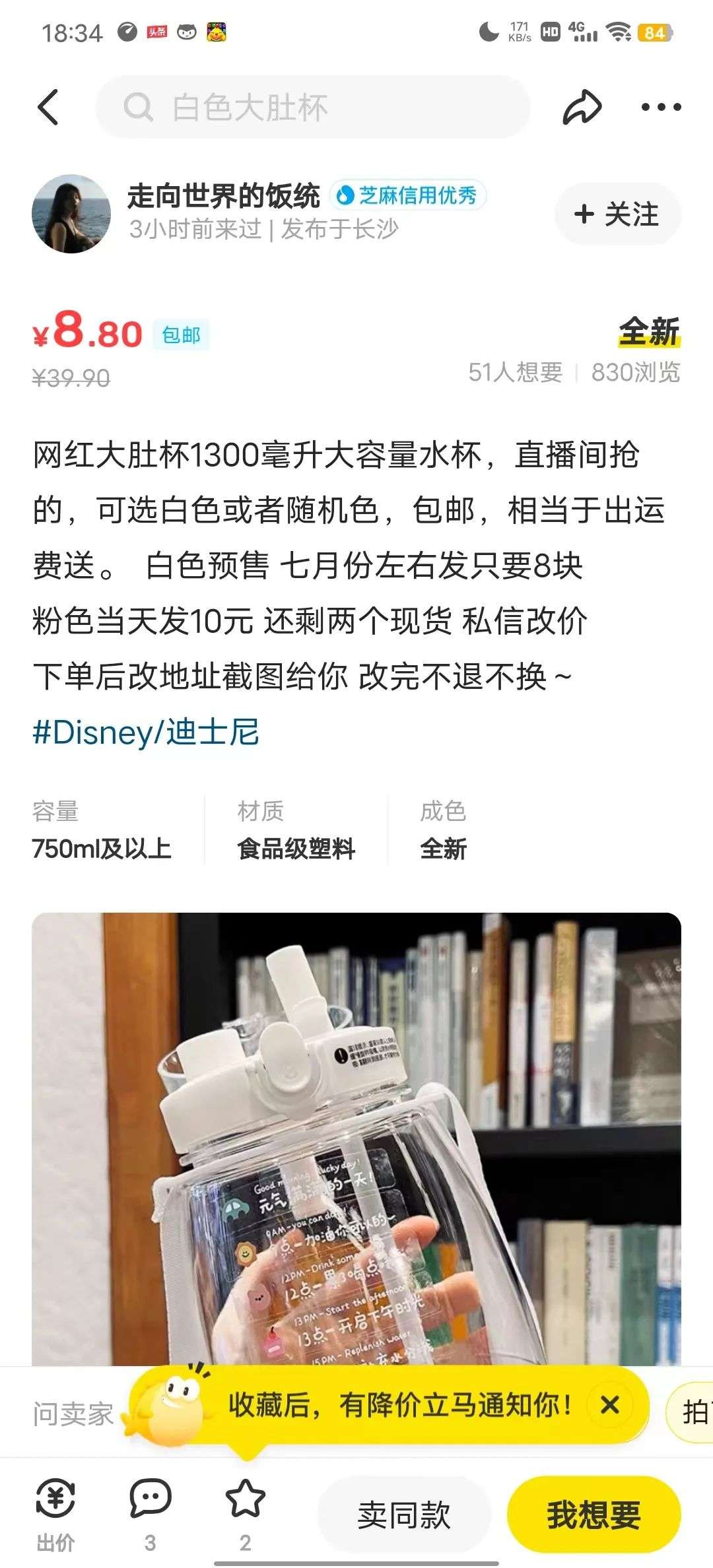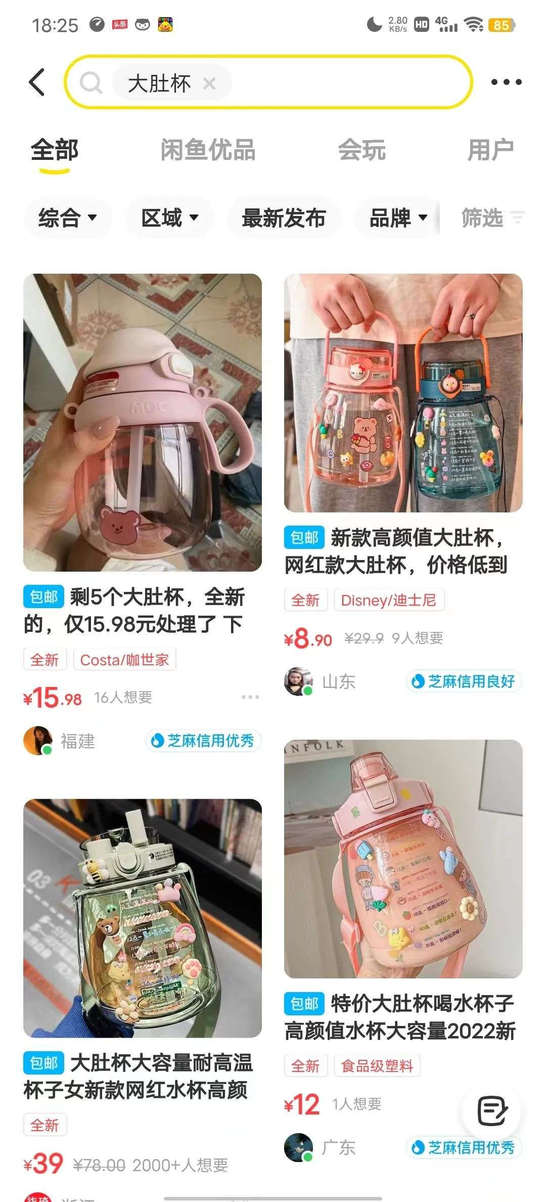 比如在某鱼上,不少用户二次转卖从直播间抢到的大肚杯。