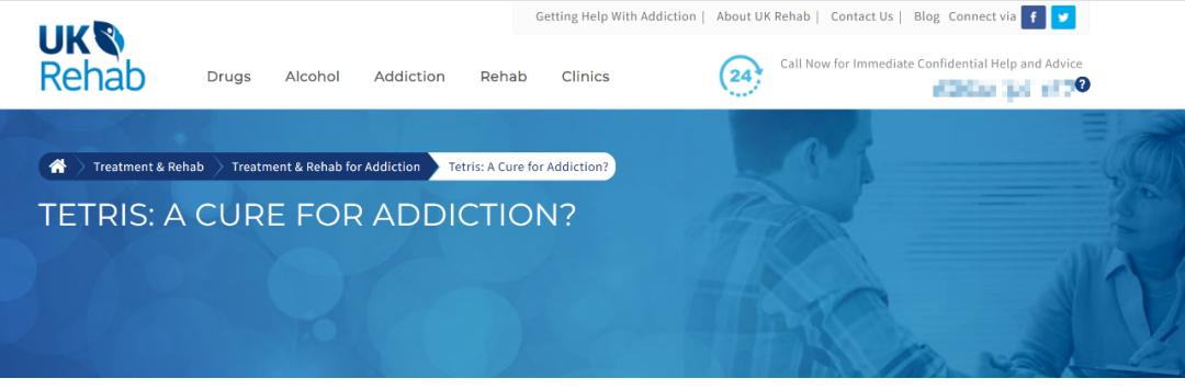 英国某治疗机构官网截图,TETRIS即为《俄罗斯方块》