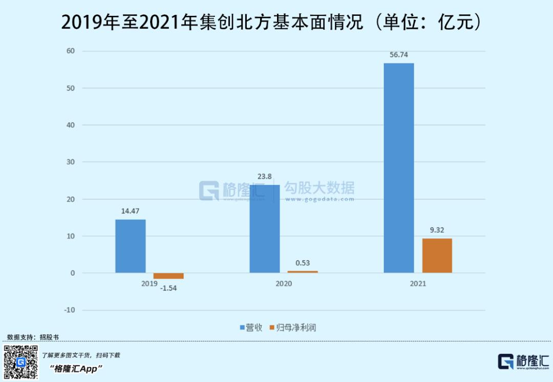 正如张晋芳所说,“谁掌握了最新的科技,谁就打开了高速发展的通道”,集创北方2020年扭亏为盈,2021年归母净利润同比增长1649%。叠加这一市场蓝海十分广阔,公司2019年至2021年分别实现营收14.47亿元、23.8亿元、56.74亿元,复合增长率为98%。
