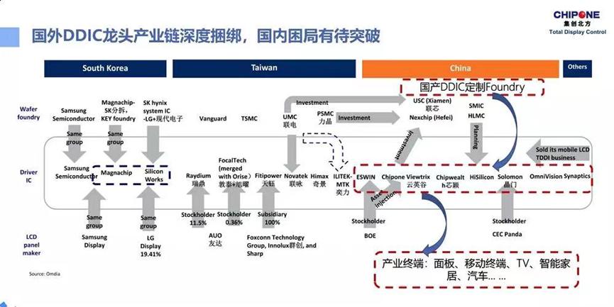 回顾韩国与中国台湾显示驱动芯片厂商的发展,不难发现,它们的产业链深度捆绑,一种是韩国的全产业链整合模式,一种是中国台湾的上下游绑定模式,而目前国内半导体设计公司和上游晶圆还没有形成绑定,仍在往这个方向努力。