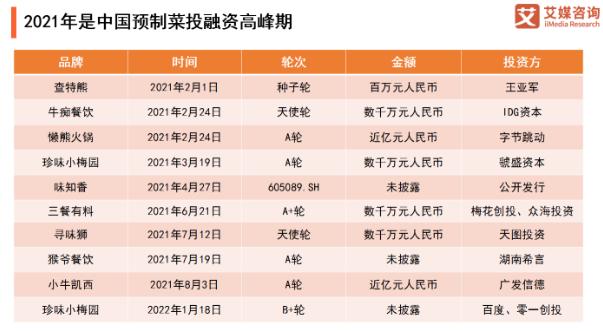更不要提春江水暖鸭先知的资本投资者,《2022年中国预制菜行业洞察报告》显示,2013年至2021年,预制菜赛道共发生71起投融资事件,披露融资总金额超10亿元,涉及项目42个。仅在2020年-2021年,预制菜赛道就发生23起融资(如:查特熊、牛痴餐饮、懒熊火锅、珍味小梅园、味知香、三餐有料、寻味狮、猴爷餐饮、小牛凯西)。