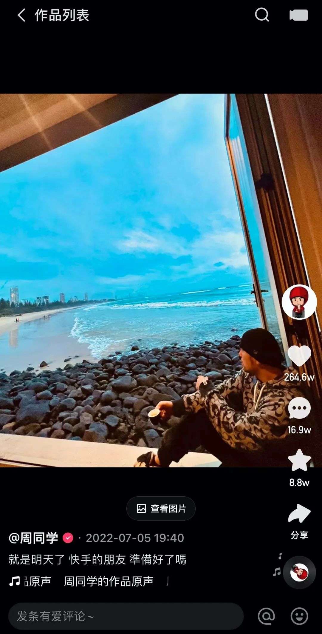 7月5日,周杰伦在快手账号发了一条视频,并喊话网友:“就是明天了 快手的朋友 准备好了吗”。该视频收获264万点赞,话题#周杰伦账号开始营业了#还冲上了微博热搜第1,足见网友们对周杰伦“营业”的期待。