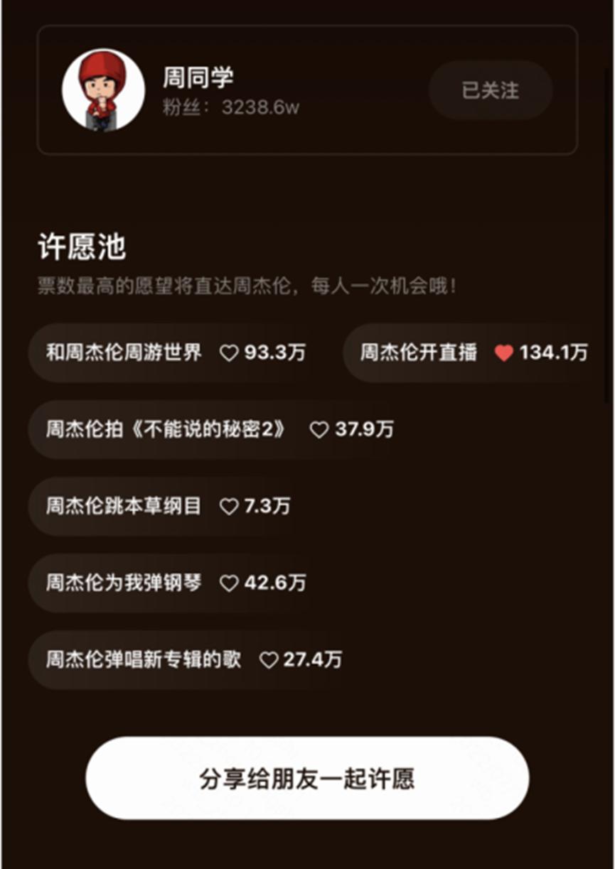 此前有媒体报道,“周杰伦”三个字,对一个音乐播放器而言,意味着15%的DAU(日活跃用户数量)增幅,对于更具现场感、真实感与互动感的短视频直播平台来说,想象空间更是不可估量。在这场“周杰伦”争夺战中,快手这张“周同学”的王牌似乎依然扛打,独家互动视频、直播等内容,不仅体现了快手对明星的吸引力,也极大丰富了快手娱乐生态。