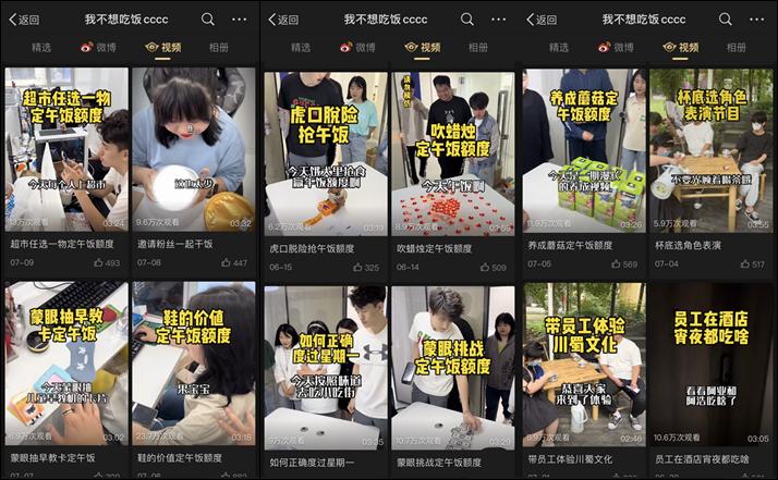 「我不想吃饭」是以饭总的第一人称视角,作为老板的他通过抽盲盒、答题等互动游戏的方式,将不同类型的饭菜投喂给员工,记录下员工趣味日常、对待不同饭菜不同反应,以及干饭过程的趣味职场美食Volg账号。