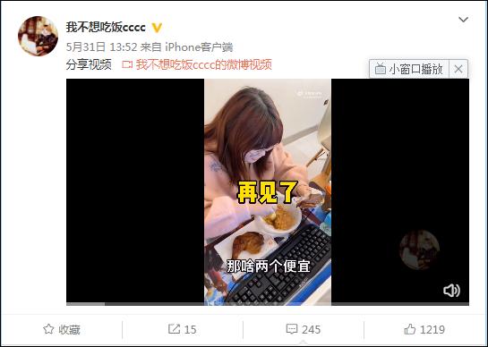 处罚的原因是账号出现了肖像侵权,侵权的对象是原本在「我不想吃饭」视频中出镜的一位名叫宫城的员工。也正是宫城对账号进行举报,才出现了这次的处罚。