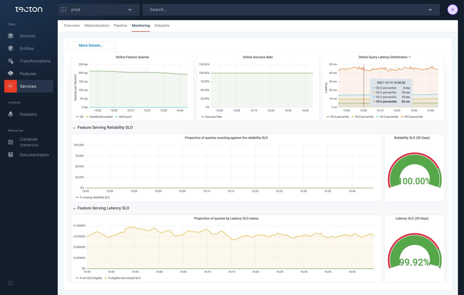 「Tecton」使用实时数据源自动构建模型的特征。在机器学习中,“特征”是独立的变量,系统使用特征进行预测。除了编排数据管道外,「Tecton」还可以跨人工智能系统训练和部署环境存储特征值。该平台可以监控数据管道、计算延迟和处理成本,并检索历史特征,用于训练系统。