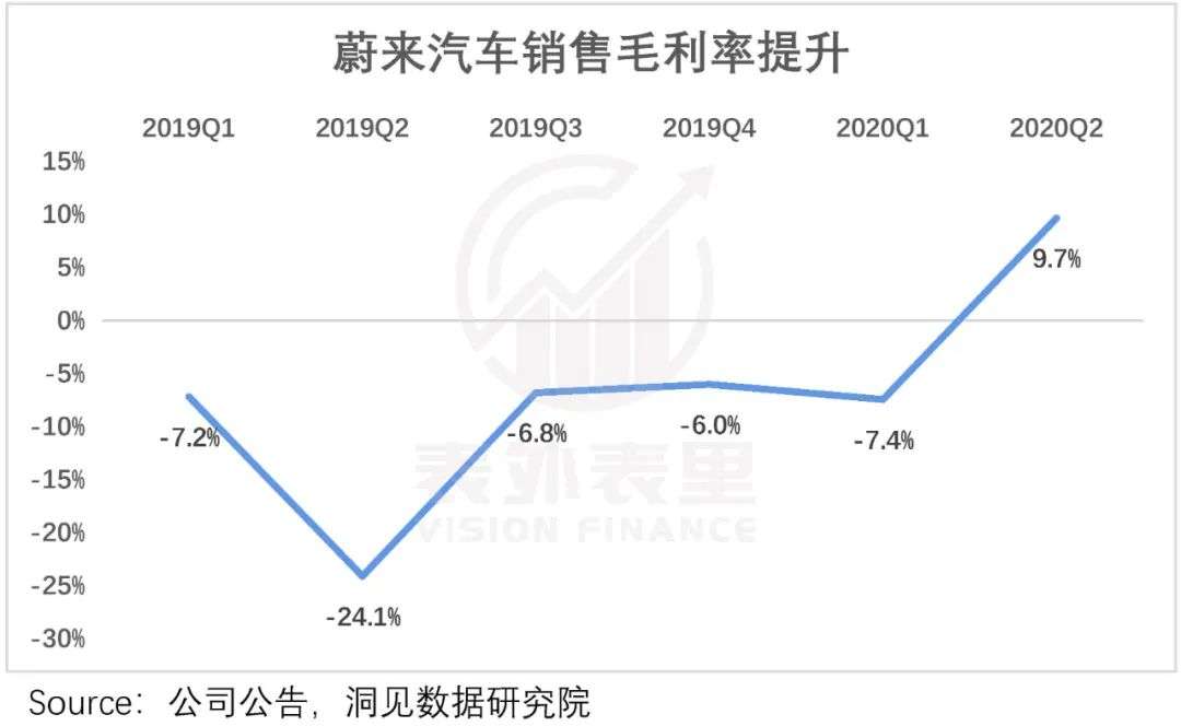因此,在ES6于2019年6月开始交付之后,蔚来的汽车销售毛利率有明显好转。