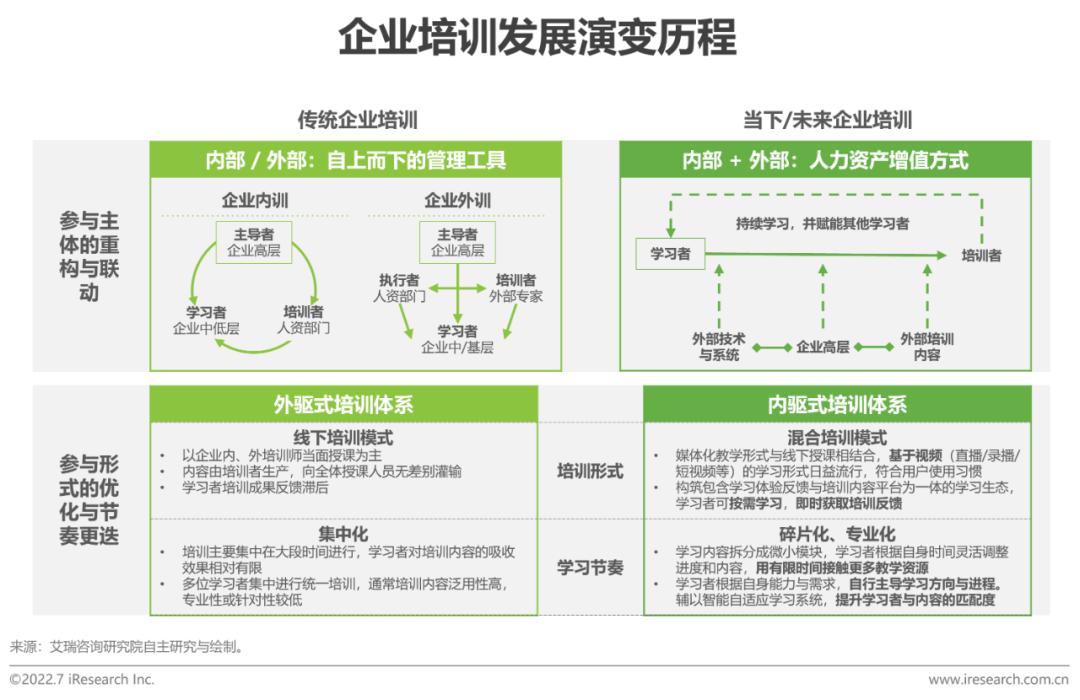 随着行业及岗位的分化与企业管理的不断发展,企业培训已经逐渐从一个自上而下的管理工具演变为一个企业以满足学习者需求为重心的人力资产增值方式,通过不断重构和联动企业培训的多方主体,企业培训借助当下更容易被用户接受的媒体形式、学习节奏、交互方式不断推进迭代,在未来具有广阔的想象空间。