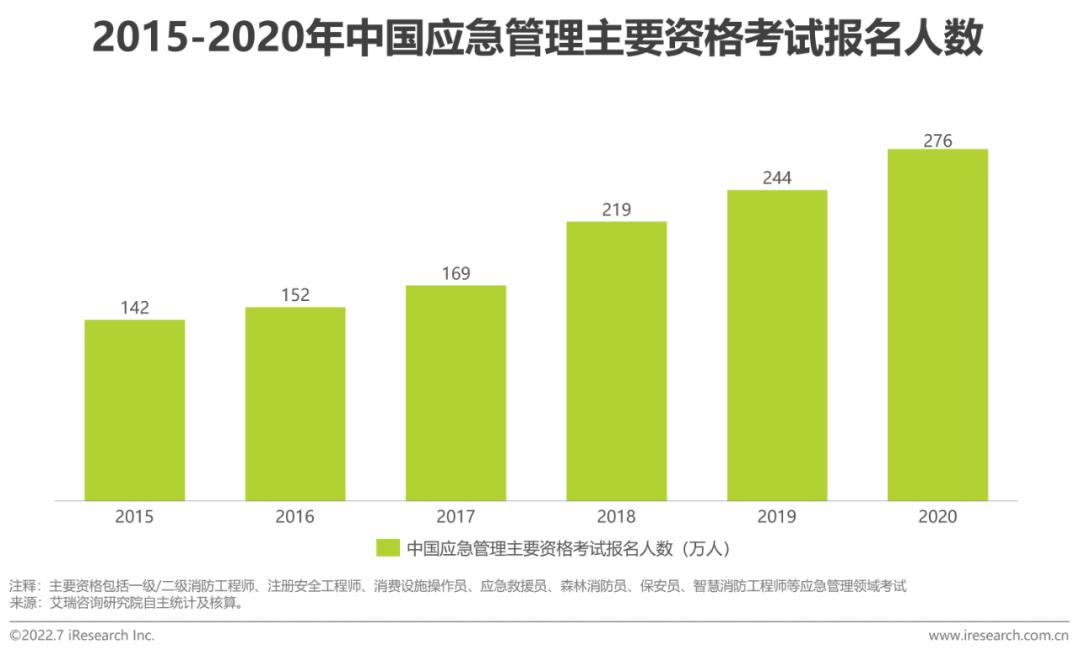 应急行业通常指为预防、处置突发事件提供产品和服务而形成的活动集合。事故灾难常导致严重的人员伤亡或直接经济损失等灾难后果。随着近年来疫情及多次重大灾害险情的冲击,我国应急行业的发展受到更多重视,越来越多人参与应急行业的各类资格考试。同时由于政策对于应急管理工作的规范日益严格,从业者也持续通过培训等形式不断提升自身职业素养,这也驱动了职业教培行业在应急领域的持续发展。