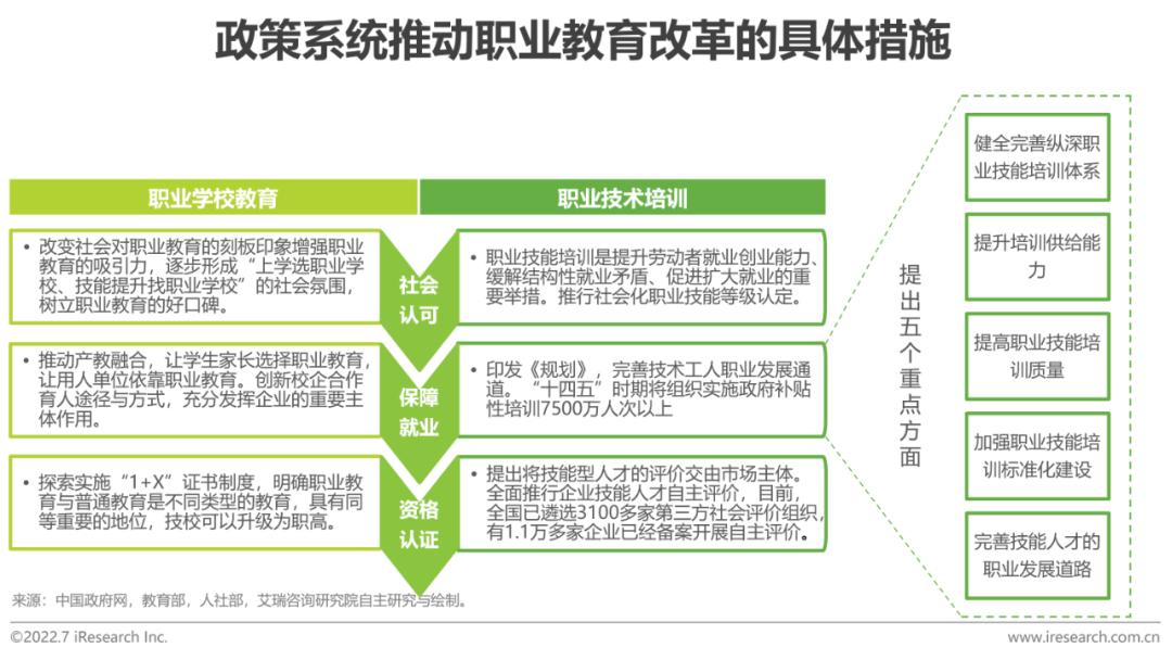 “十四五”对职业教育作出长远规划,职业学校教育与职业技术培训改革政策同步推进,充分促进人才发展