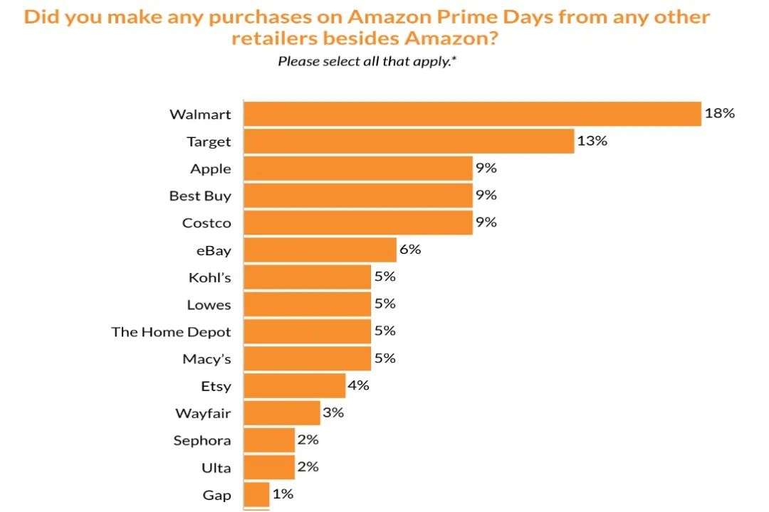 调查显示,电子产品、消费硬件等折扣空间比较大的商品是往年Prime Day最受消费者们喜爱的类别,但当如今全网折扣都铺天盖地到来时,大部分消费者也会去货比三家。