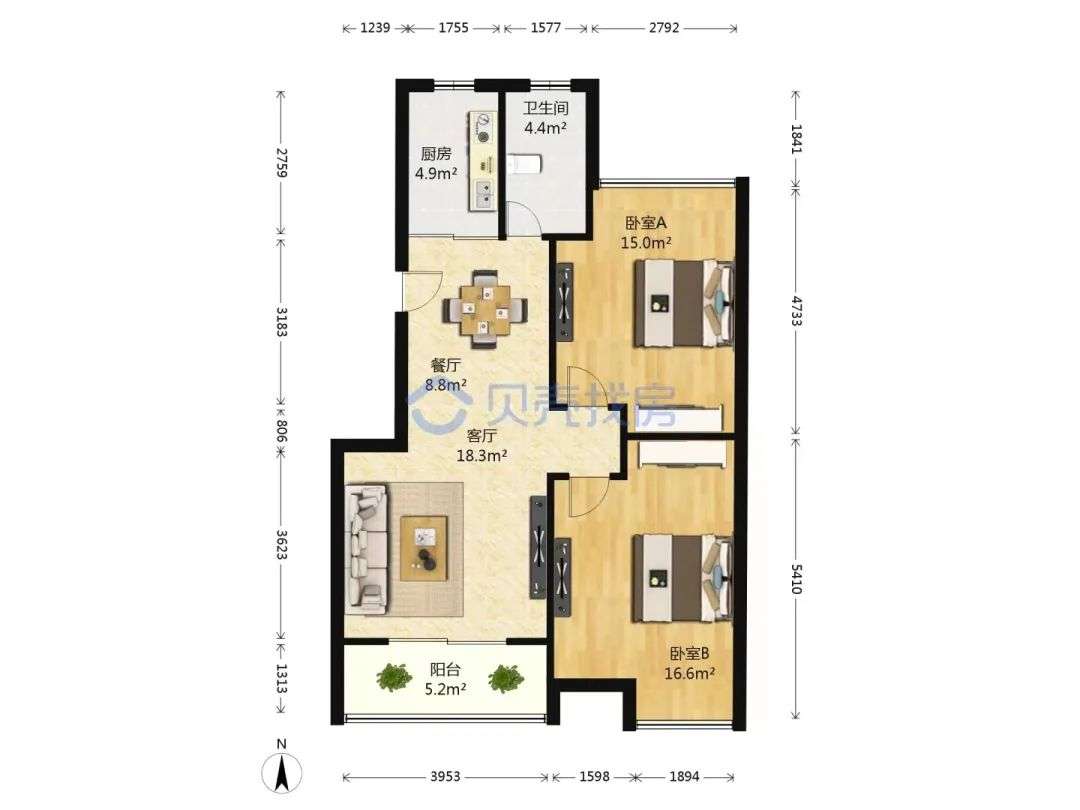 图:和源祥邸88㎡户型图