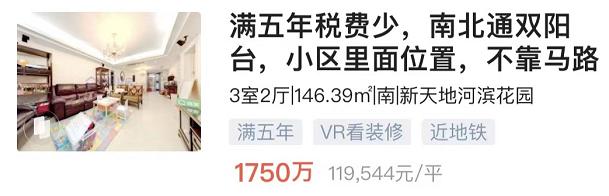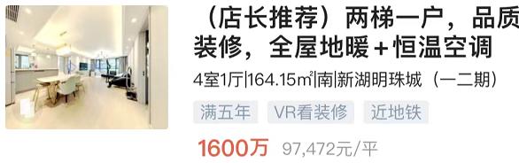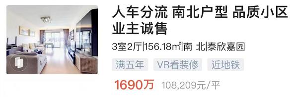 仁恒公园世纪,155㎡3150万,单价20+。