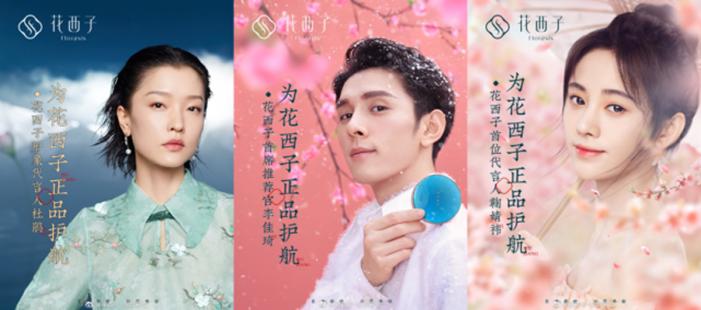 这些极具中国元素的美妆产品,拥有繁复华丽的配色外观,既精准击中年轻消费者的兴趣点,也进一步加强了花西子“东方美学彩妆”的品牌形象。同时,在品牌创始人吴成龙的掌舵下,花西子还将“营销”二字彻底玩转。不仅先后与有着“四千年美女”称号的鞠婧祎、颇具古风长相的超模杜鹃等国风形象明星进行广告合作。为加速打响品牌知名度,花西子还加大了线下广告的投放力度,让品牌广告入侵年轻消费者生活的各个角落,并积极与线上主播及KOL合作进行产品推广,抢占线上流量红利。