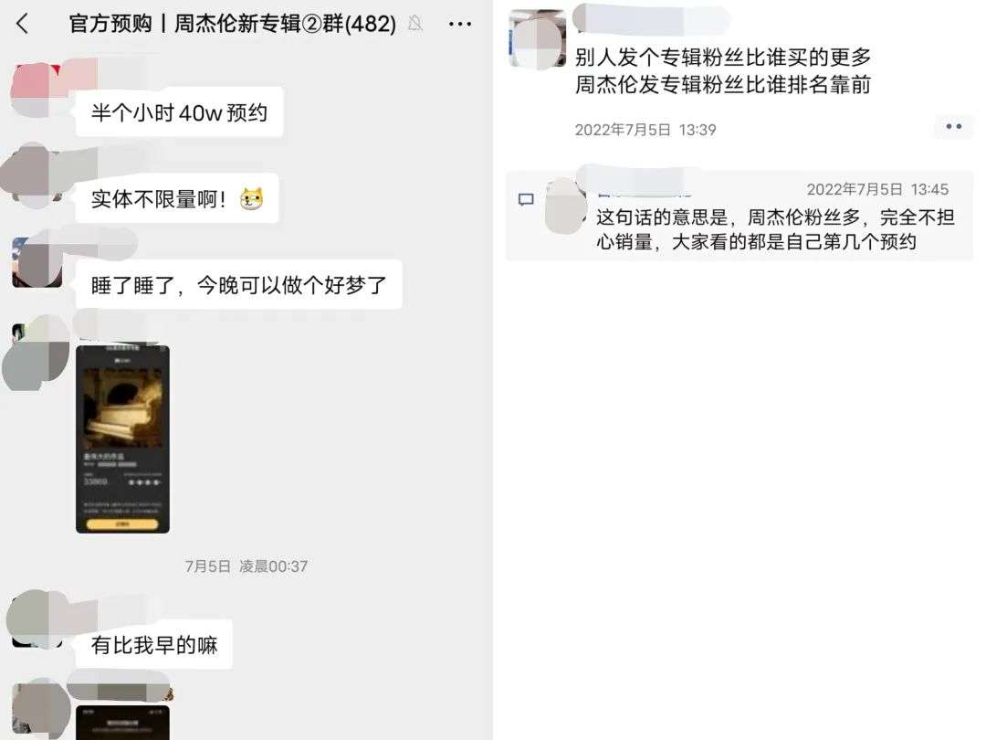 爱豆粉丝们通常会将预约数据以战报的形式呈现,作为与对家比拼时的重要战绩。不过对杰迷来说,“比拼”更多发生在了内部——大家并不担心新歌销量,只比拼速度,有杰迷表示:别人发专辑比谁买的多,周杰伦发专辑粉丝比谁先预约。