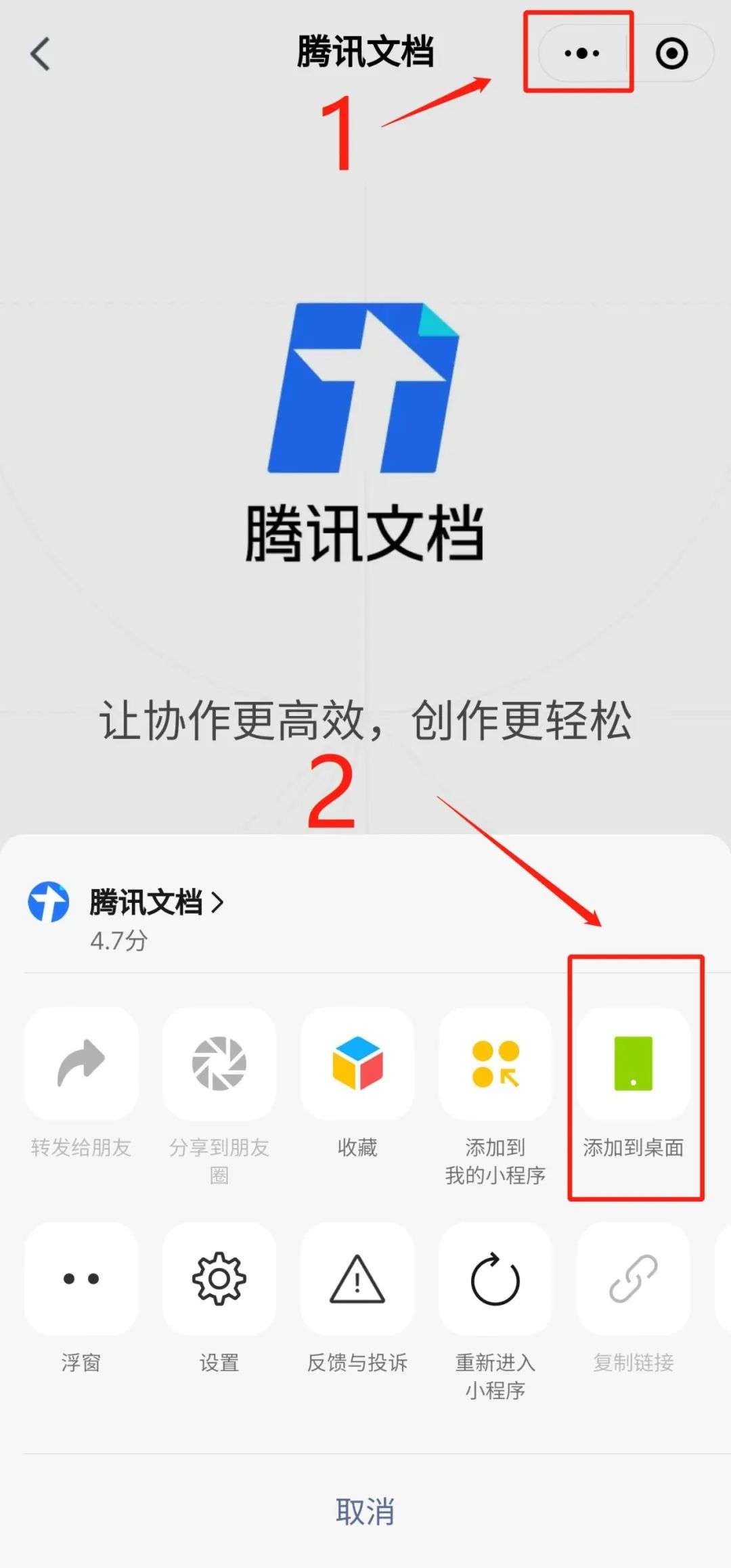 在微信中任意选择一款小程序,点击右上角的【···】,可以直接【添加到桌面】。
