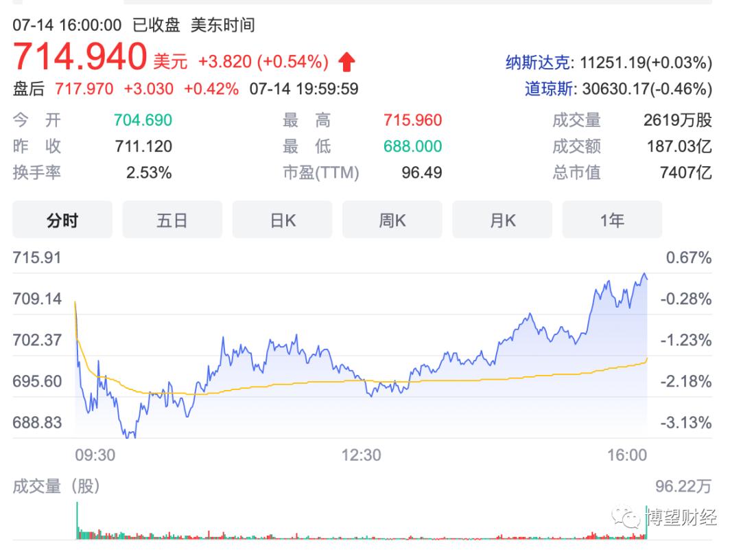 截至美东时间2022年7月14日收盘,特斯拉市值为7406.85亿美元,是全球市值最高的电动汽车公司。