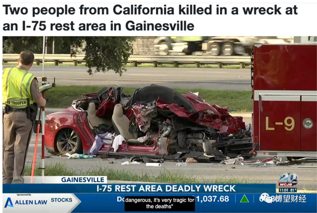 在佛罗里达州盖恩斯维尔以南的 75 号州际公路上,一辆特斯拉撞上了一辆停在卡车停靠站的沃尔玛固定牵引拖车的后部,车中66岁女司机和67岁的男乘客在现场即被宣布死亡。
