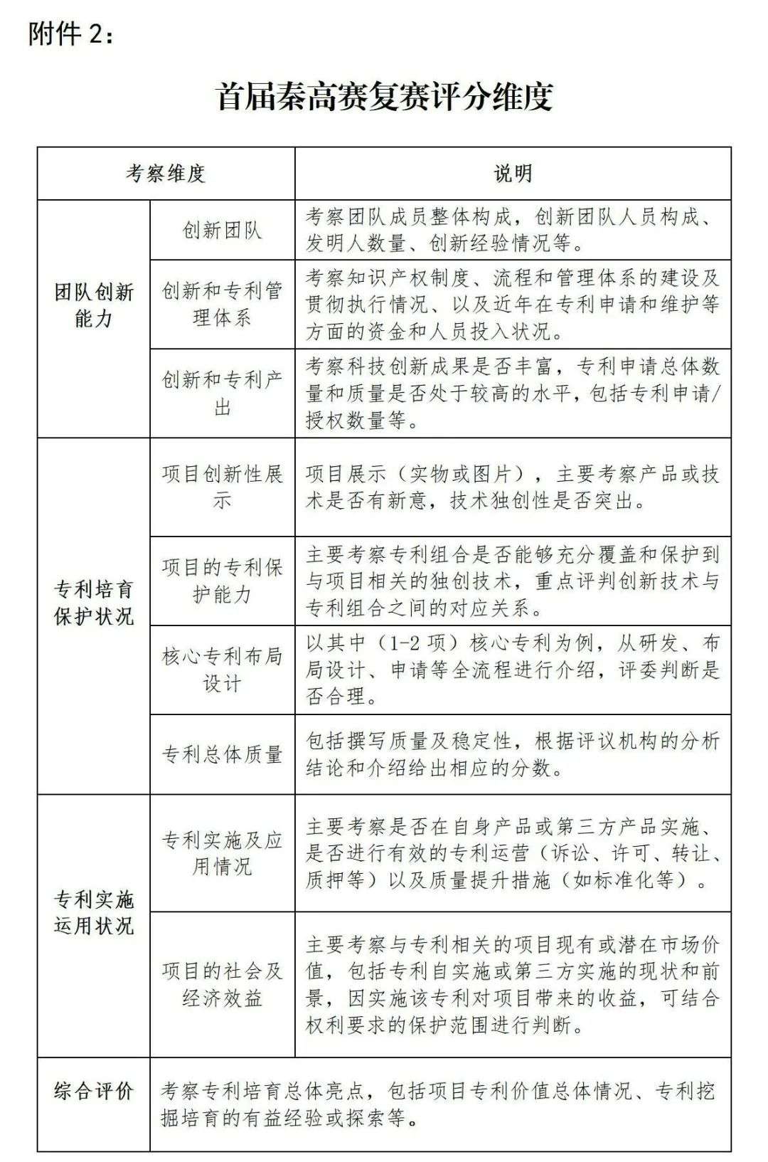 1.评委专家从团队创新能力、专利培育保护状况、专利实施运用状况和综合评价等维度进行打分,评分标准详见附件2。