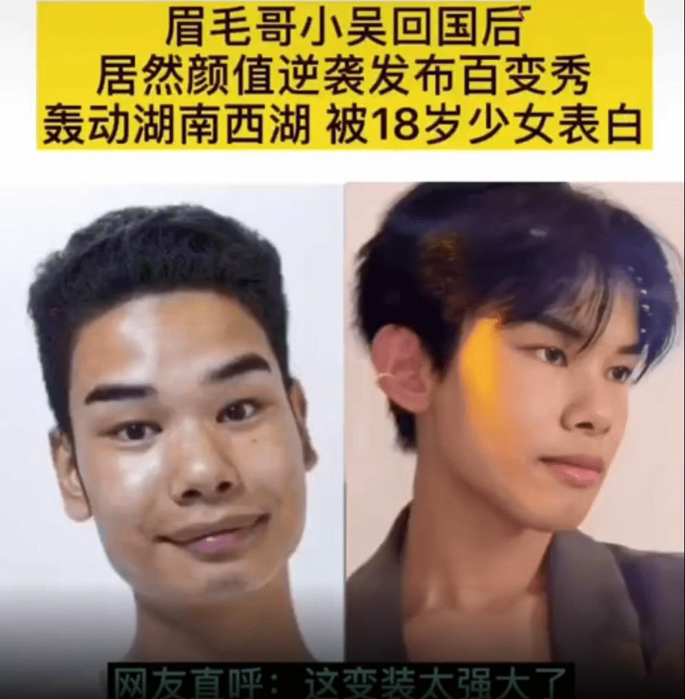 结果到2021年时,小吴在网上发布的一系列换装视频,被人发现面目大变,很快有了他去韩国整容的传闻;也有人拍到他在街上向一个女性索吻被拒的照片。但这些除了给大众带来一些谈资,并没给小吴本人再带来多少热度。