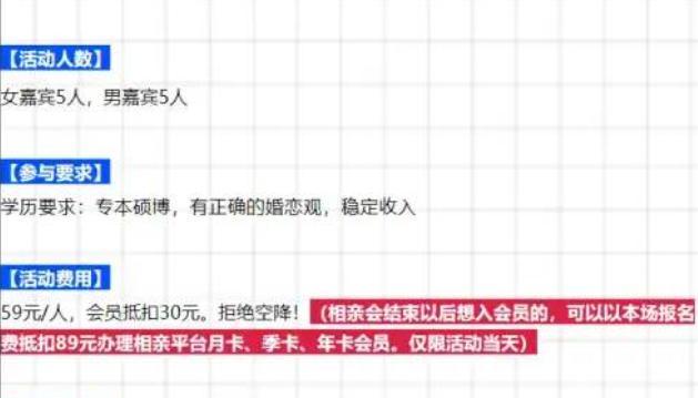 男性要求5000万元以上资产才有资格报名,并需交纳6000元入场费,女性则只要貌美如花身材姣好就够了。“这不是皮条局吗”,群众愤慨,主办者出面道歉,称自己并无恶意,只是被外界曲解云云。