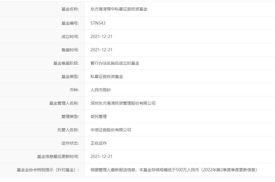 备案于2020年12月9日的东方港湾马拉松10号,存续管理规模同样低于500万元。