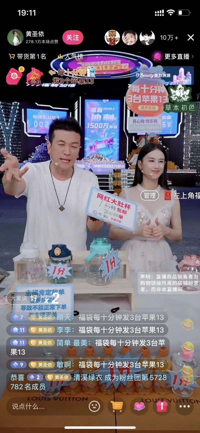 不过,刚开始直播的黄圣依,估计不会想到在今天她的抖音粉丝已经超过了 1300 万,每场直播都能达到过亿的成交额。