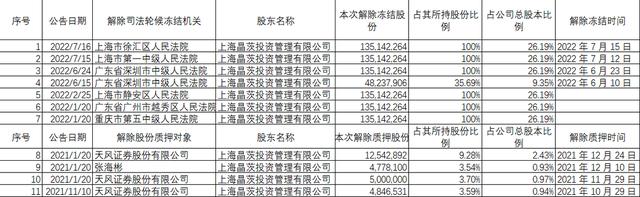松果财经了解到,该公司自2022年以来总计发布了7次解除控股股东所持股份冻结的相关公告: