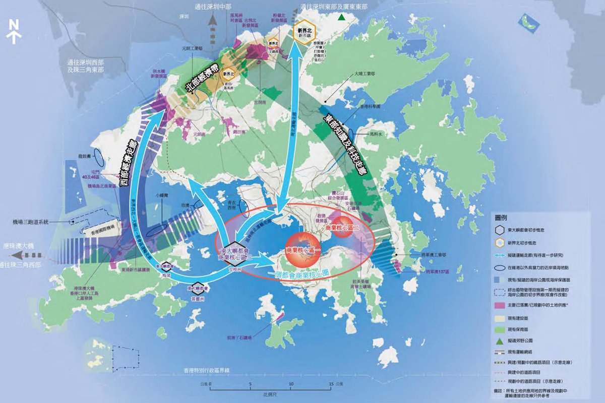 (《北部都会区发展策略》的落实,将会令香港形成南金融、北创科的双重心布局。)
