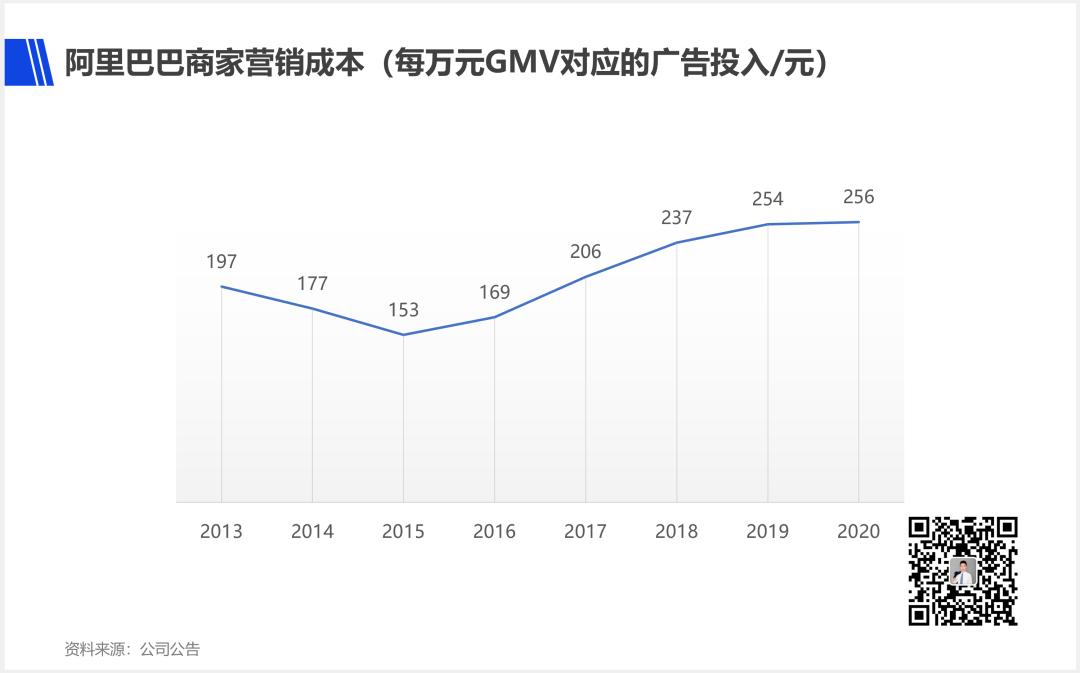 2015年以前,由于信息和商品流通呈现正规模经济,阿里巴巴得以飞速发展,市场份额持续攀高。