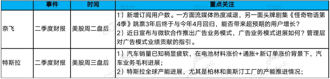 由于美股财报季,各家公司都会提供下一季度的展望,当下节点,当期业绩可能不如未来一季的展望重要,尤其是很多公司中间下修预期的情况下,业绩如果有雷,这个季度会有相对集中的暴雷季。