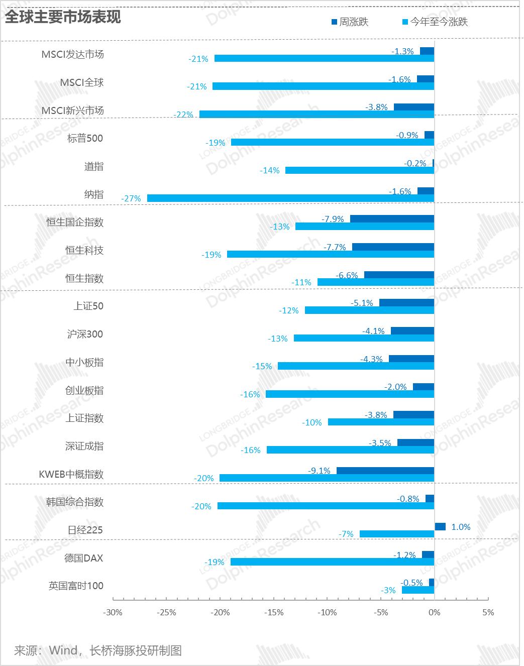 这是海豚君模拟组合Alpha Dolphin正式推出以来的第五周组合动态更新。在更新海豚虚拟组合进展之前,先来回顾一下上周的市场和宏观情况: