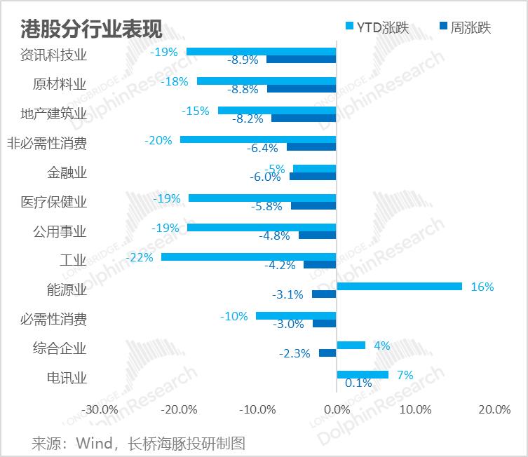 而反过来看上周的全球市场,充分反映了美国加息预期强化,美元回流对新兴市场影响更强于发达市场的情况。可以看到,包括香港在内全球新兴市场下跌幅度明显高于发达市场。
