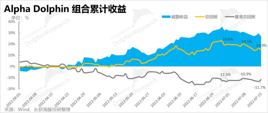 如果以3月1日内部测试启动时点来看,海豚Alpha Dolphin组合截至上周五的整体收益是18%(含股息收益)。